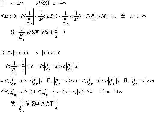 设随机变量序列ξn依概率收敛于非零常数a, 而且ξn≠0. 证明1/ξn依概率收敛于1/a.