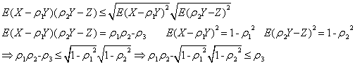 9. 设X,Y和Z的数学期望均为0, 方差均为1. 设X与Y的相关系数为ρ1, Y与Z的相关系数为ρ2, X与Z的相关系数为ρ3. 证明