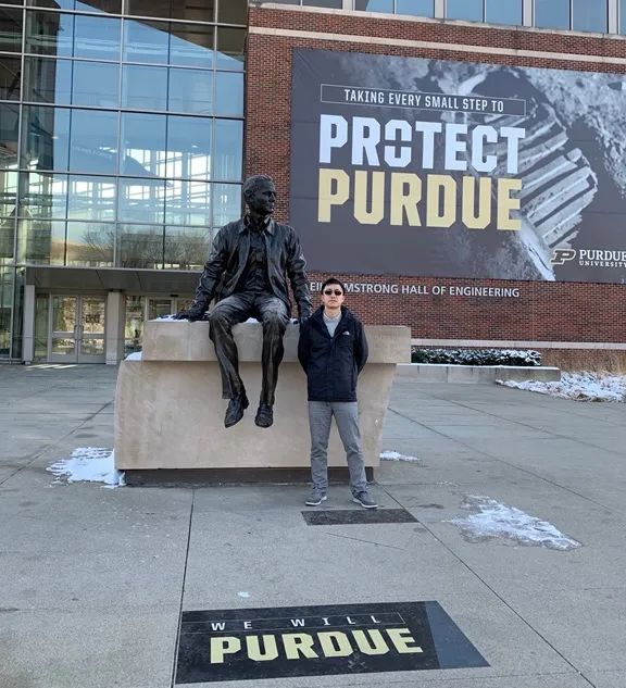 2019年李驰老师在美国普渡大学校园内与Neil Armstrong雕像合影