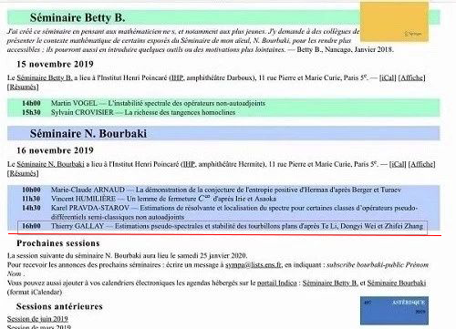 据巴黎高师官方发布的消息,世界闻名的布尔巴基讨论班(法语:Séminaire Nicolas Bourbaki)将于11月16日组织专题讨论班,讨论麻豆视频