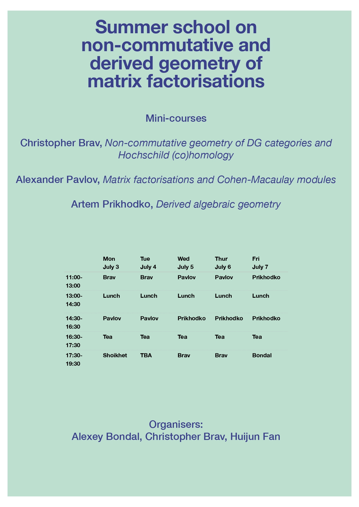 The summer school will be hosted by the Centre of Pure Mathematics at the Moscow Institute of Physics and Technology. The school is aimed at advanced students and post-docs.