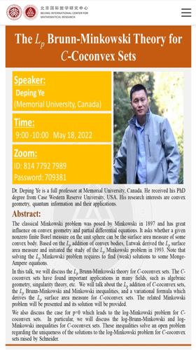 Dr. Deping Ye is a full professor at Memorial University, Canada. He received his PhD degree from Case Western Reserve University, USA. His research interests are convex geometry, quantum information and their applications.