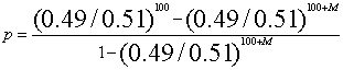 2. 某赌庄有资产100,000元. 另有一赌徒拥有无穷大的赌资, 试图使该赌庄破产. 他每次压注1000元, 每次赢钱的概率为0.49而输钱的概率为0.51. 问该赌徒能使赌庄破产的概率为多大?