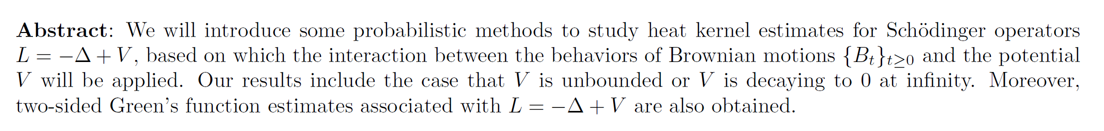 Probability and Statistics Seminar——Heat kernel estimates for Schrödinger operators