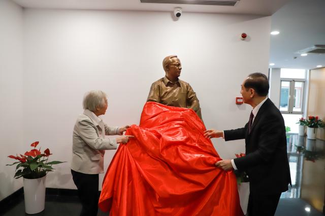 韩启德与陈堃銶为王选铜像和王选报告厅揭幕