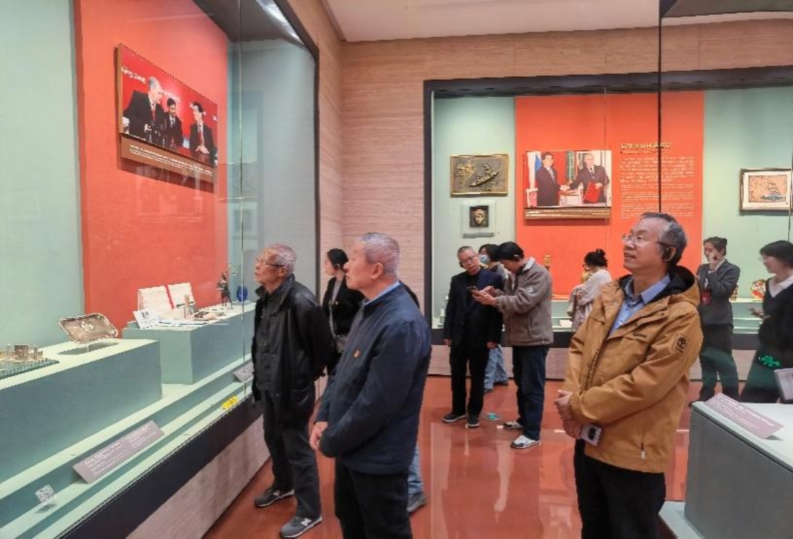 参观过程中,教职工们认真聆听讲解,深入了解每一件礼品背后的外交故事与深厚情谊。大家或驻足凝神细观,或低语交流感悟,并不时用手机记录下这些凝结友谊与历史的珍贵物件。