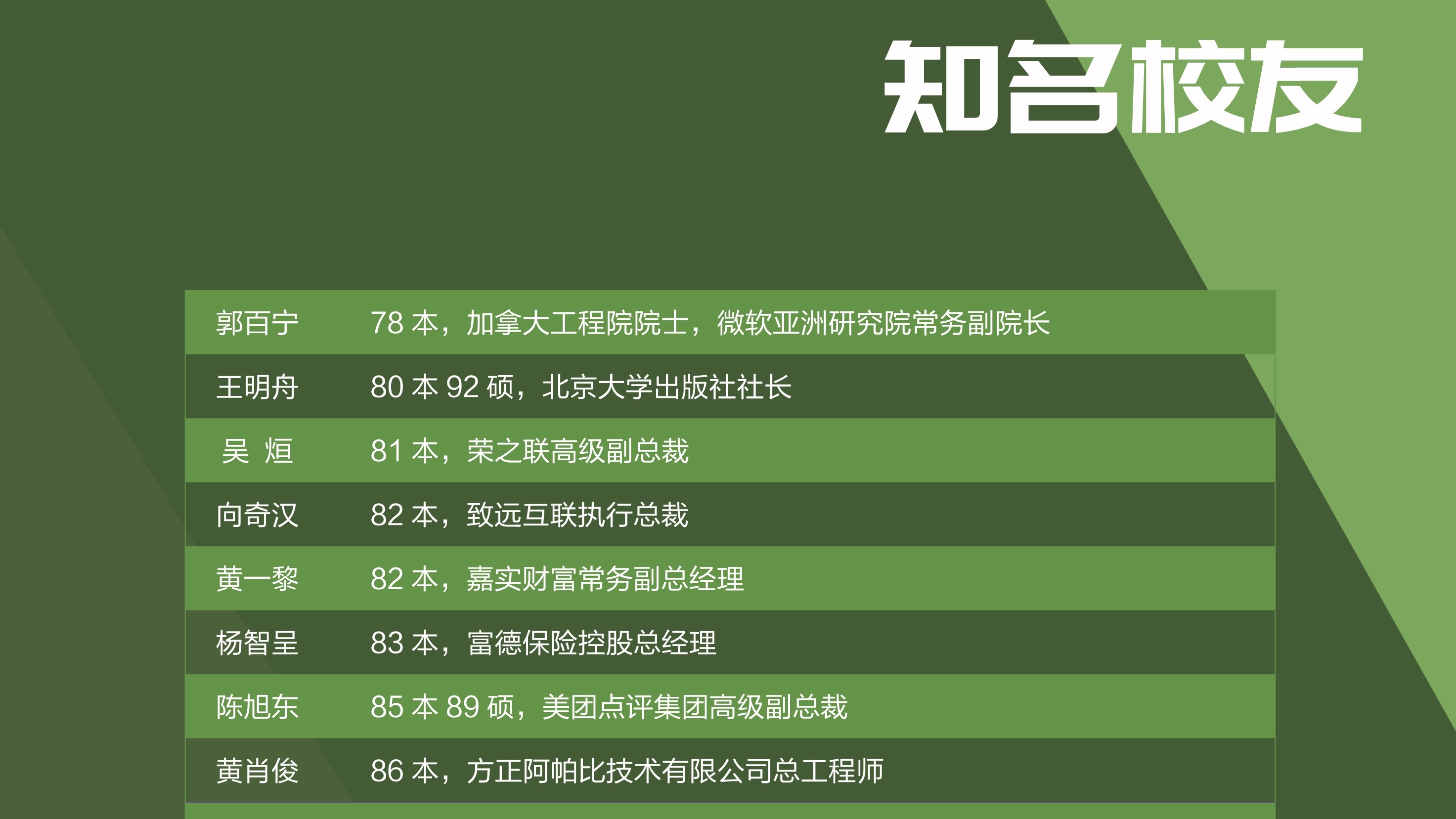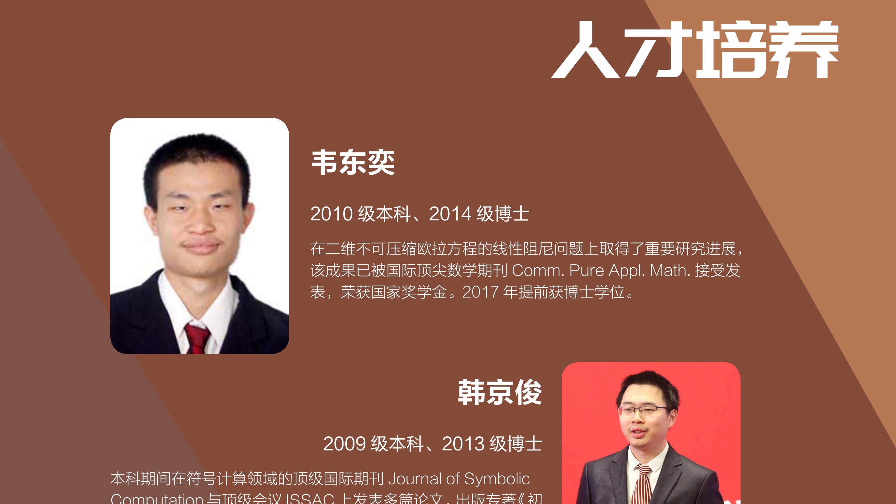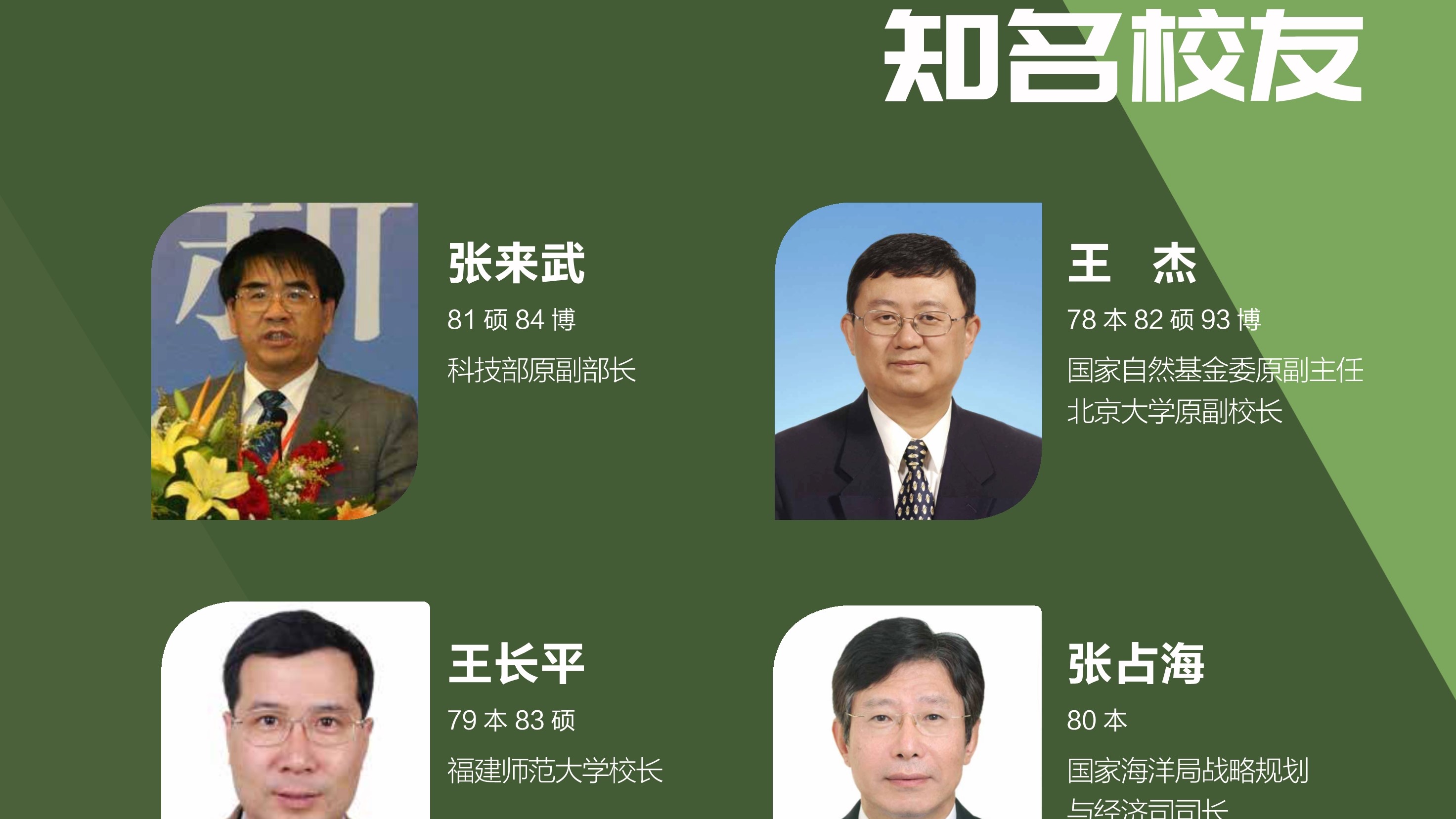 四十年来学院共培养了七千九百多位学生,他们活跃在全国各条战线,乃至世界各地更加广阔的舞台上,在数学及其相关领域取得突出成就。校友们的成就体现了教师的劳动价值,我们为曾经陪伴他们成长而感到骄傲。由于院友数量巨大,展览很可能挂一漏万,疏忽之处尚祈谅解,并请指正.