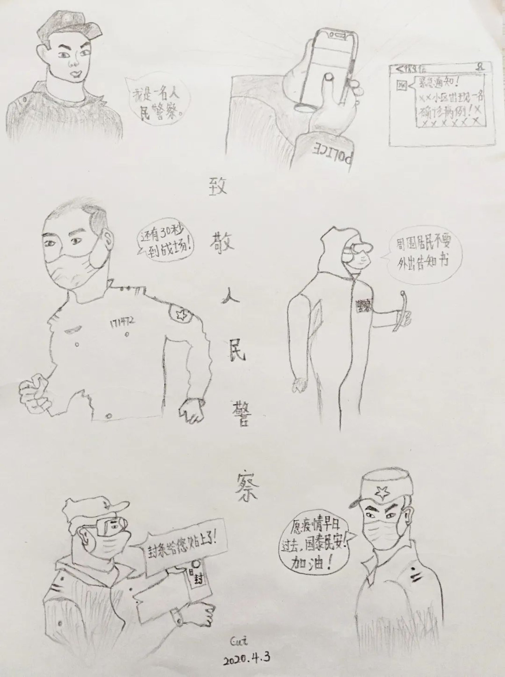 行政实验室党支部党员、行政教辅老师们用他们的画笔记录下了抗疫期间的特殊心境,用画笔和海报致敬英雄,铭记精神,祝福我们的祖国山河无恙、国泰民安。