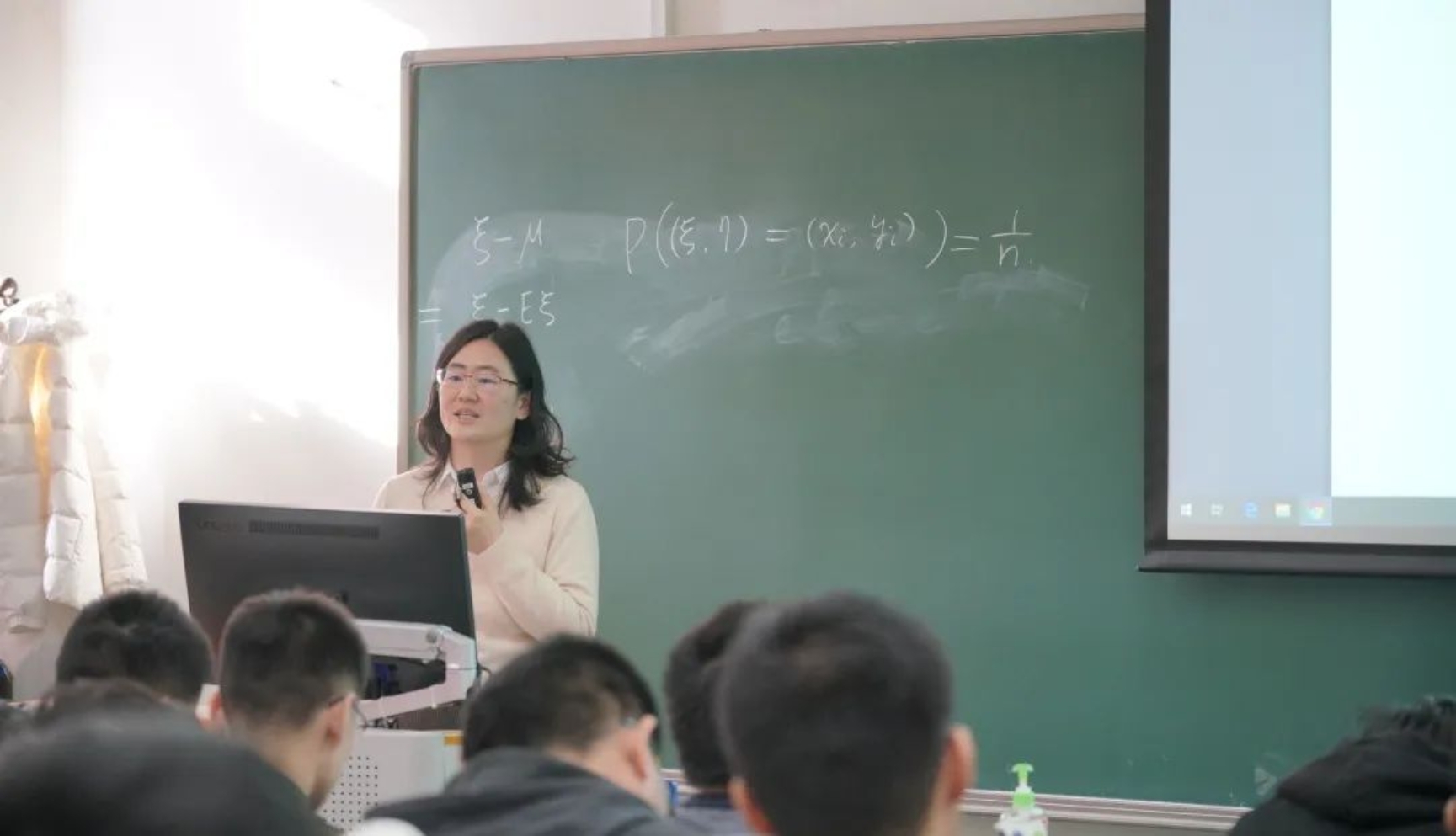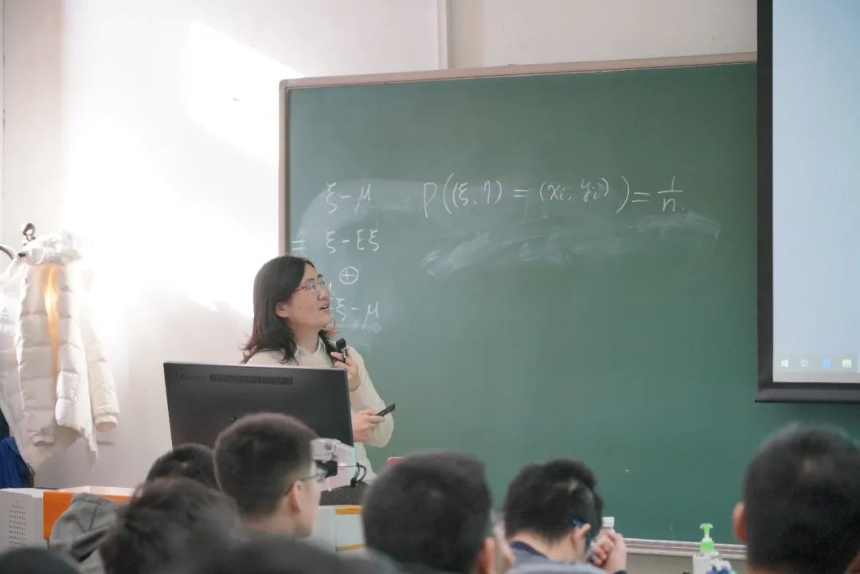 章老师在教学中会不断根据同学们的反馈调整教学上的内容和事例。“有些定义和公式, 教材上就是一句,课上我要解释这个定义和公式的含义。比如,‘期望’是随机变量的平均值,可以用时间上的大规模采样去算它的平均值,也可以用空间上的加权平均去算。而‘条件期望’直观来说就是分区域去算平均值。我第一次上课的时候,就给学生们打比方,就像一块调色板,你有一块很大的板,每个点上涂一点颜色,条件期望是什么?就是我画出一片小区域,然后拿个小画笔把这个区域上的颜色混合,比如说蓝色和黄色就会混成绿色,混合后你大面上看就是一块一块的被混过的颜色,这就是条件期望的‘分区域求平均’的含义。但课后有一个成绩挺好的学生跟我说,‘老师,我在预习的时候其实自己想得挺明白的,您调色板的比喻出来后,我整个脑子就乱了’。我就意识到自己这个例子举得不太好,下次上课就会调整。”