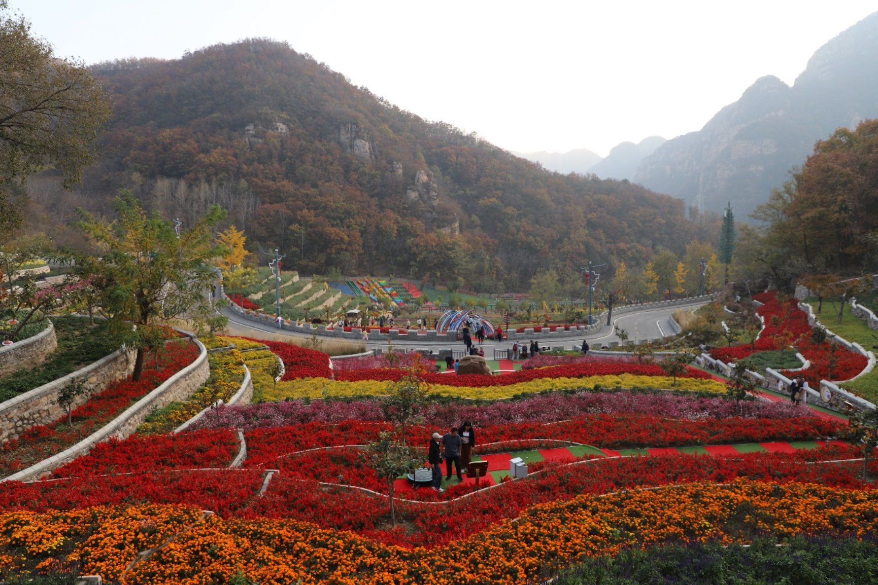 下午,参与秋游的教职工和家属们前往梨树沟休闲小镇,位于北京市平谷区北部的黄松峪乡。这个小镇坐落在燕山山脉,四周群山环抱,山势连绵起伏,形状各异,仿佛是大自然的杰作。