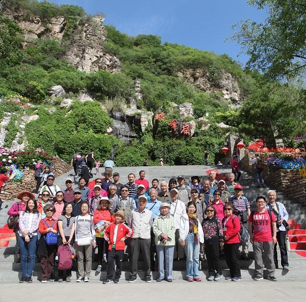 下山路上又是另一番景象。路中的凉亭处,几位年逾古稀的老师久别重逢,促膝长谈,忆往昔峥嵘岁月稠。一棵百年黄栌立于众树丛中,上面挂满了红色的许愿带,寄托着游人的美好憧憬。云层的阴影在翠绿的山体上缓缓游走,为太行余脉增添了变化多姿的层次与色调。青绿娇小的山野桃遍地洒落,诠释着生生不息的自然法则。临近山脚处开辟的玫瑰花园,则为坡峰岭带来了别致的色彩。
