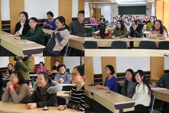 第二环节成语抢答赛在大家期待的目光下拉开序幕,由多才多艺的赵静老师担任主持人。赵老师提前精心准备了六个与女性相关的题目供参赛两队抢答。另外,未进入第二环节的小组成员可以通过学院女工之家微信群平台对成语进行抢答,在参赛选手答对题目之前在微信群中率先给出答案的老师可以获得一份小奖品。线下线上活动同时进行,引起了台下观众积极参与的兴趣。虽然比赛难度增大,但现场选手们反而更加兴趣盎然,全身心投入其中。