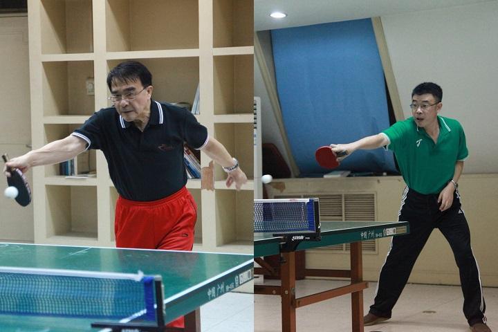 一番厮杀过后,比分定格在12:7上,老师队依靠整体的厚度笑到了最后。比赛临近尾声时,蒋美跃教授与谭小江教授联手出战,与学生队中获得全胜战绩的白成/黄翔宇组合上演了罕见的双打对决。经过前几球磨合,两位老师逐渐找到了配合的感觉,并且充分发挥了直拍前三板抢攻的优势,多次率先起板得手。双方你来我往,速战速决,在屡屡出现的“神仙球”前露出会心的笑容。这次特别的双打比赛,想必会成为参赛双方难忘的回忆。