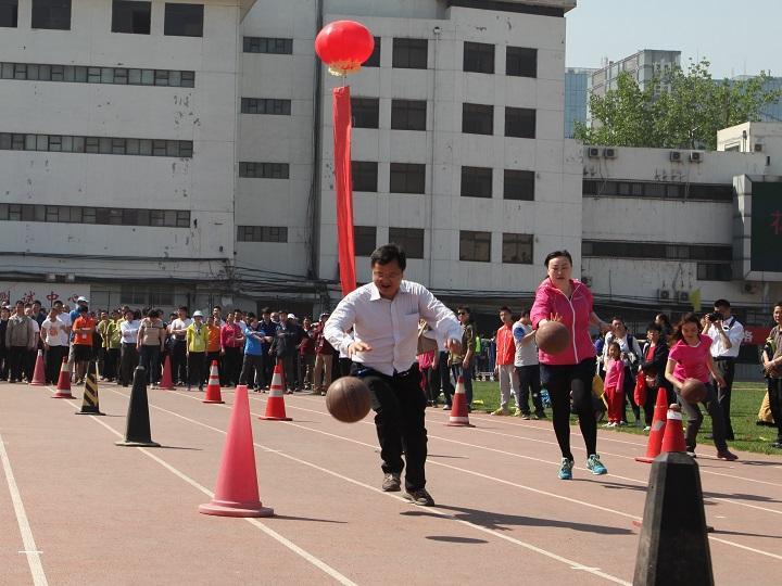 史宇光老师在院(系)、处级领导干部30米趣味折返跑接力赛中(图/邵琳琳)