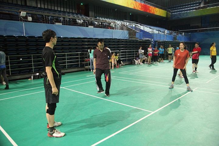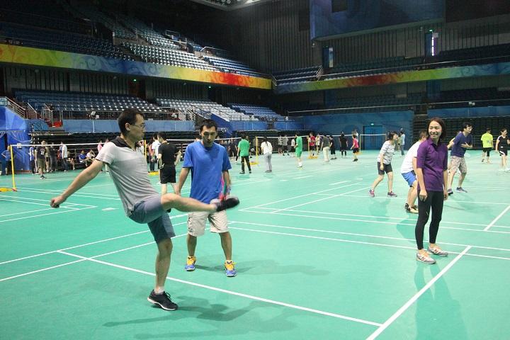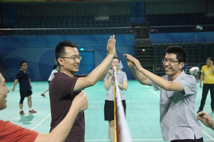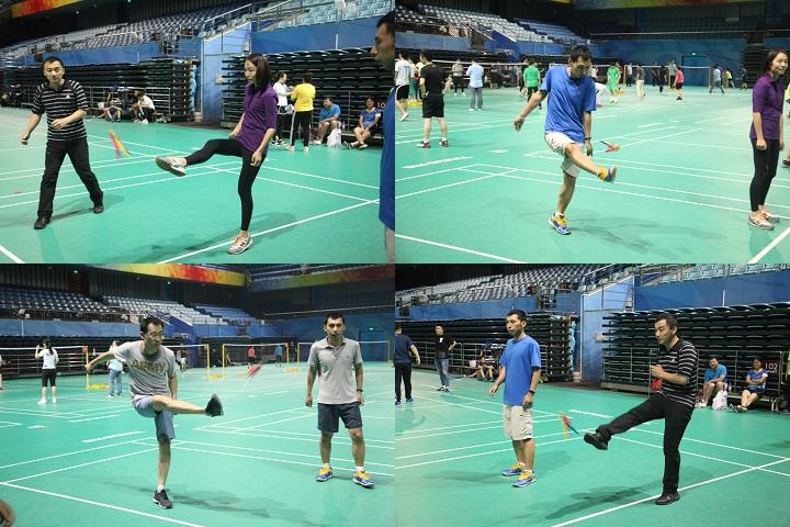 借着去年数学毽球队成功跻身前八的东风,数学学院工会本年度加大了组织力度,聚集了12位队员分成两队参加今年的比赛。其中数学二队的老师们基本上都是初次接触毽球这项运动,但在学院工会主席孙赵君老师的悉心指导与点拨下,大家很快就喜欢上了这项运动,并深深地投入其中。每一次发球入界,每一次回球过网,都在点点滴滴地积累着努力与成功的快乐。E组的6场小组赛中,5位老师陆续登场亮相,充分体验了比赛的节奏与气氛,为来年的比赛打下了良好的基础。