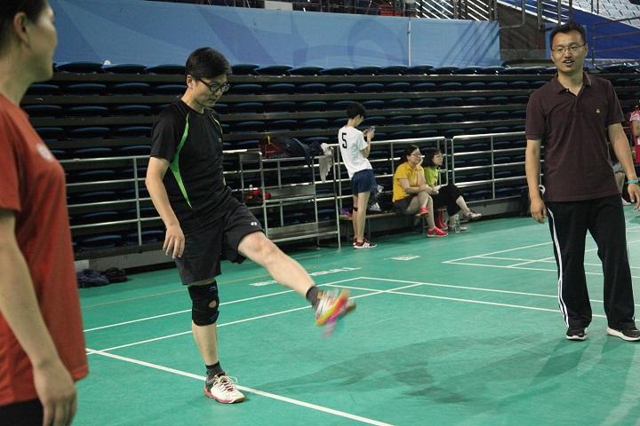 数学一队的新生力量张磊教授首次参加毽球比赛,就充分发挥了自己身为学院头号羽毛球手在球场上积累的经验优势。他在一队的多场比赛中担当重任,并且凭借不凡的身手、敏捷的移动和灵巧的球路连连得分。一队一度取得四连胜。但在决定小组头名的关键一役中,数学一队以1:2惜败于地空一队,最终取得五胜一负的成绩,位居D组第二,连续第四年杀入复赛十六强。
