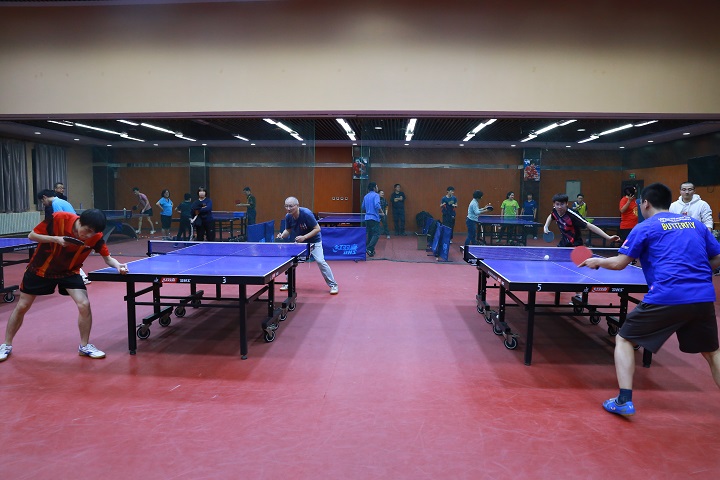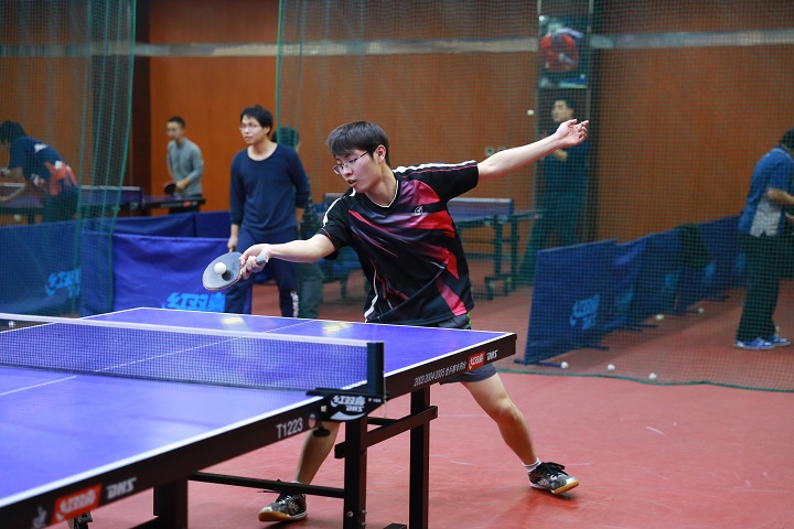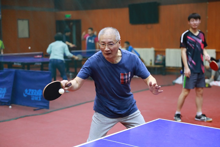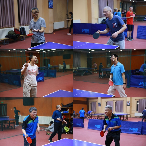 傍晚5时,乒乓球友谊赛也拉开帷幕。本次赛事人气爆棚,10位老师和13名同学构成了师生友谊赛史上最庞大的比赛阵容。比赛分为4个小组,每组有师生种子队员各一名,三个6人小组对半打3轮单循环后头两名交叉淘汰,一个5人小组单循环决出前2名。经过一番激烈争夺,八强中老师和同学各占半壁河山。但在四分之一决赛中,老师队的李治平和甘少波分别不敌同学队的两大强棒琚玮和黄翔宇,仅刘张炬老师在“内战”中击败王福正老师晋级。琚玮、黄翔宇加上另一位晋级四强的好手高悦同学,形成了同学队对刘老师的围攻之势。半决赛,刘老师在与黄翔宇的比拼中充分发挥了自己的经验优势,在形势一度十分危急的情况下站稳了脚跟,并以2:1获胜挺进决赛。刘张炬老师与琚玮同学的决赛,也是师生之间的顶峰对决,弥补了夏季赛刘老师缺席的遗憾。开局阶段刘老师凭借犀利的正手突击一度取得领先。但琚玮接下来展示了雄厚的技术实力,他强劲的旋转和大力的回击完全限制了刘老师的近台战术,并最终以2:0获胜蝉联冠军。