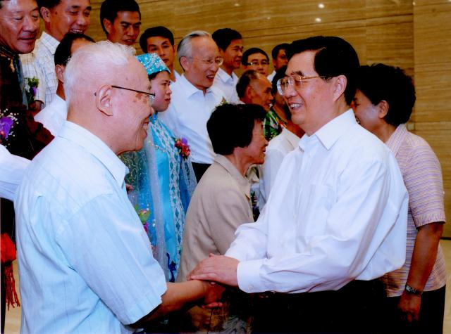 2010年姜伯驹获全国教书育人楷模称号,受到胡锦涛亲切接见