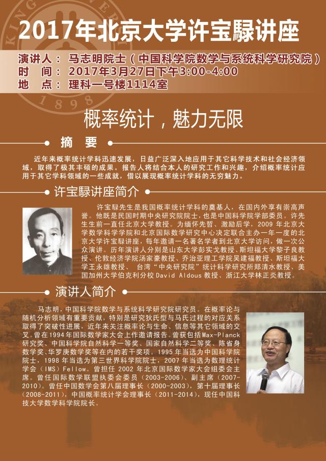 许宝騄讲座简介:许宝騄先生是我国概率统计学科的奠基人,在国内外享有崇高声誉。他既是民国时期中央研究院院士,也是中国科学院学部委员。许先生生前一直任麻豆视频