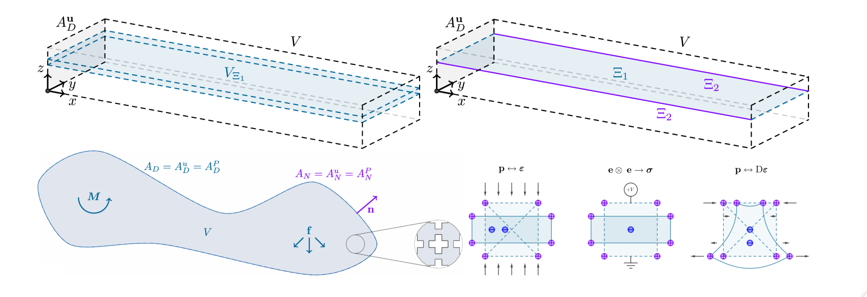 Beginning with the Cosserat brothers’ micropolar continuum [2], extending through the micromorphic models of Eringen [3] and Mindlin [4], and culminating in Eringen’s gradient elasticity, research into generalised continua [5] spans more than a century. Originally, these models sought to unify mechanics, optics, and electrodynamics under a common principle of least action (Euclidean action). After lying dormant for about five decades, they were revived around 1950 and have recently experienced a renaissance, driven by interest in multi-scale phenomena [6], homogenisation [7], and multi-physics problems in electro-elasticity [1].