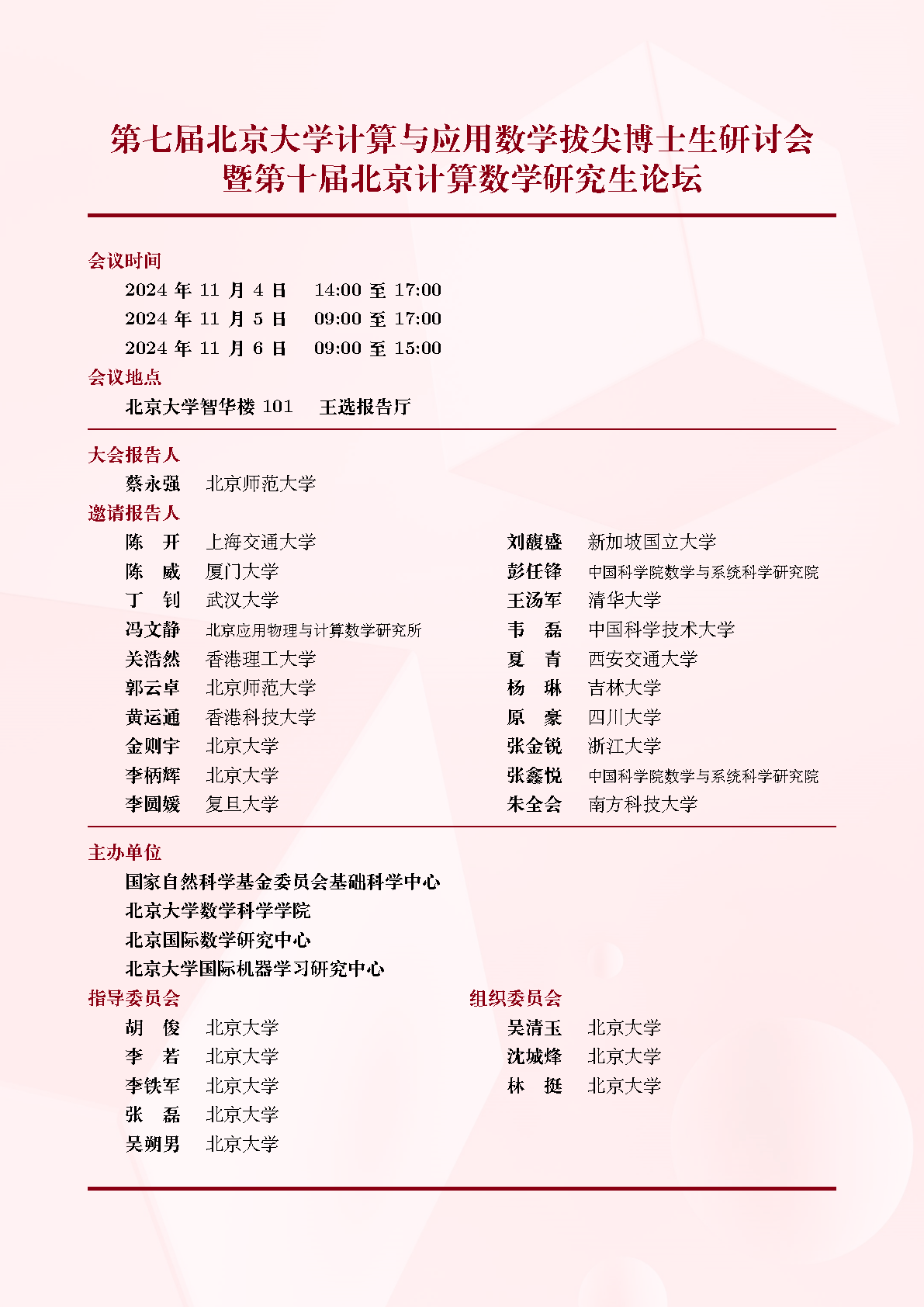 计算与应用数学拔尖博士生研讨会暨第十届北京计算数学研究生论坛计划于2024年11月4日-2024年11月6日在麻豆视频