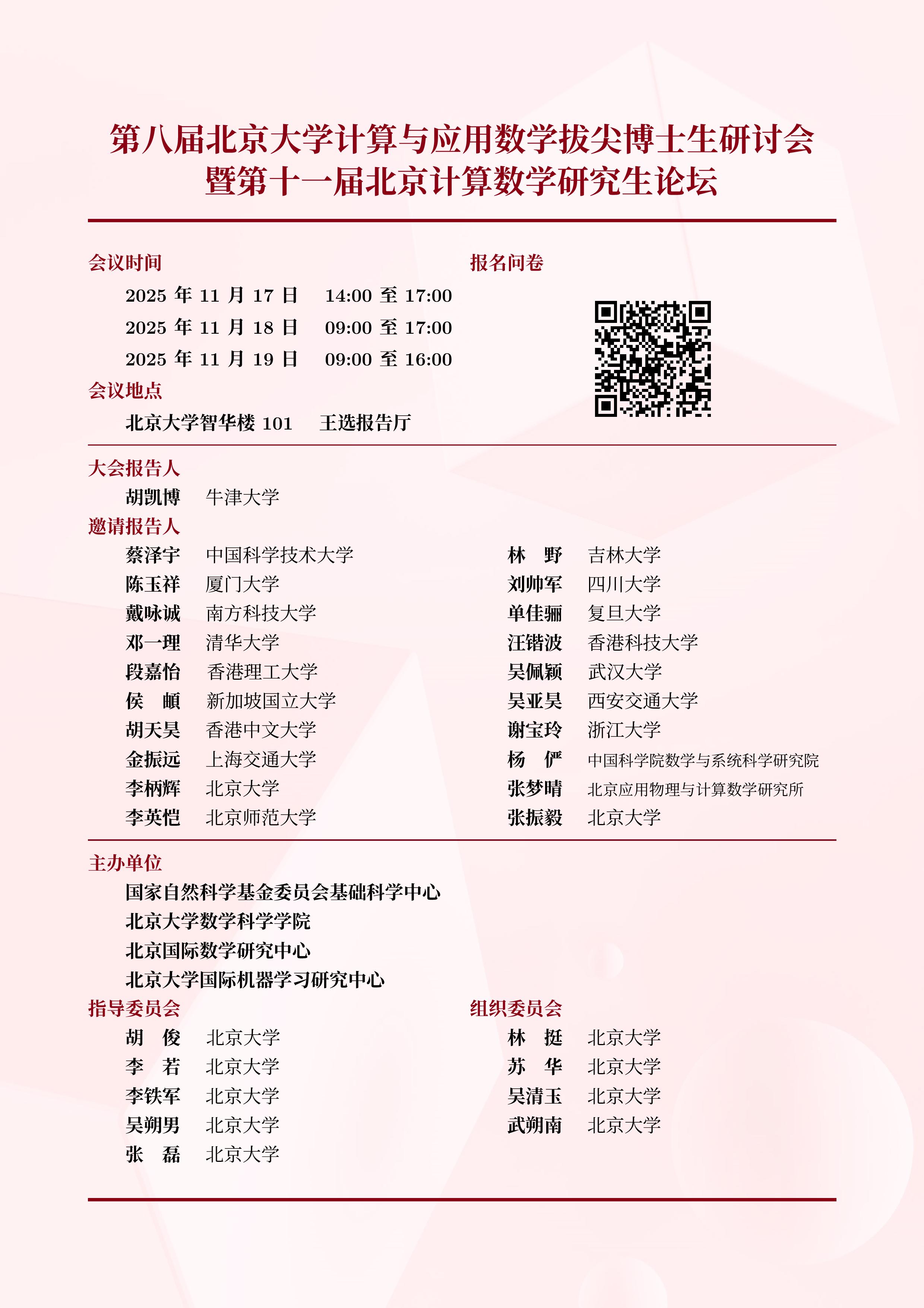 计算与应用数学拔尖博士生研讨会暨第十一届北京计算数学研究生论坛将于2025年11月17日-11月19日在麻豆视频