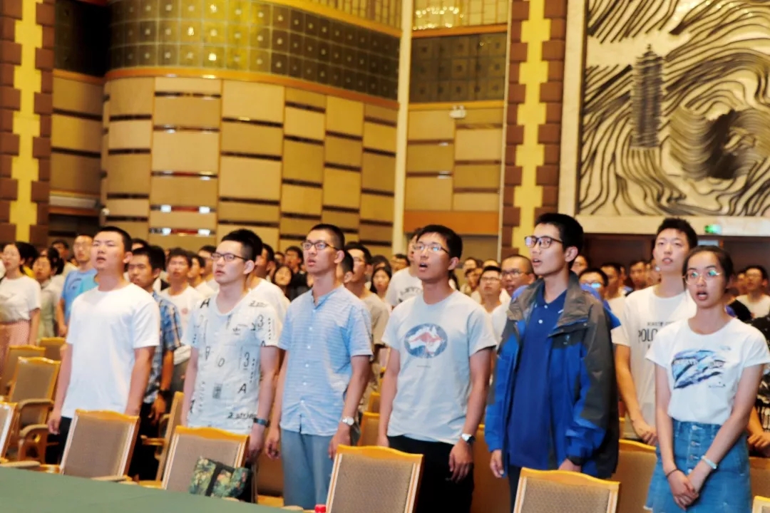 典礼开始前,2019级新同学在英杰交流中心门前留下入学合影,一张张朝气蓬勃的面庞上写满了对未来几年数院生活的期待。此前迎新、报到和军训时的2019级新生影像也在屏幕上滚动播放,记录着新同学初入燕园的足迹。在雄壮的国歌声中,开学典礼正式拉开帷幕。