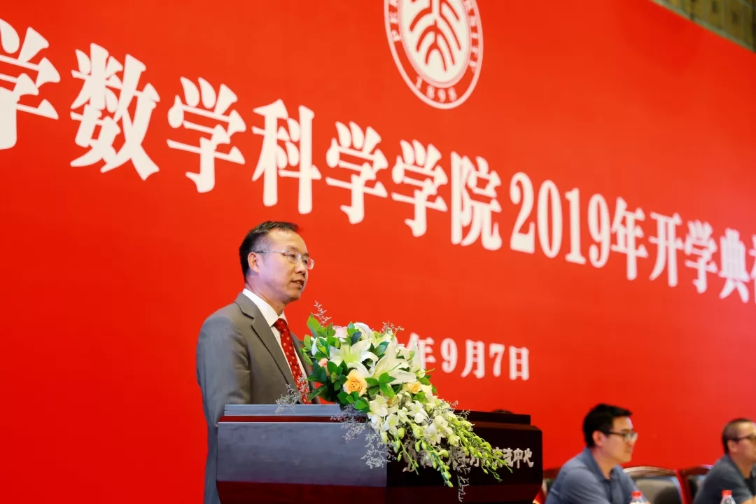 院长陈大岳教授代表学院教职员工热烈欢迎和祝贺新同学的到来。陈院长首先勉励同学们珍惜青春、努力成才,希望同学们珍视身边的同学,共勉共进。从新楼的建设,到师资队伍的建设,再到各种培养计划,学院也将倾尽所能为同学们提供更好的环境,让处于不同发展阶段的同学都能有很好的上升通道。陈院长同时勉励新同学加强品德修为,在人生抉择面前坚守正确的义利观。陈院长结合当下国情,指出数学学科在国家发展中的重要意义,并鼓励同学们在中华腾飞和民族复兴之中做出自己的贡献。最后,陈院长祝福同学们在燕园、在数院学习顺利,身体健康,生活愉快。