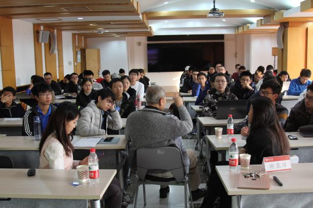 谢衷洁从多个角度介绍了数学在实际问题中的应用。从天王星光环的检测,到深海石油的勘探;从生理学LH峰值的精确测定,到军事上利用脑诱发电波曲线选拔飞行员,谢衷洁细致地为同学们阐述了深刻的数学如何助力解决各个领域面临的困难问题。他还向同学们分享了利用概率论知识检查彩票机公平性的经历,同学们通过此更深刻地感受到数学知识的魅力与作用。谢衷洁与同学们分享了自己在北大数学和在其他国家名校的教学体验,他高度赞扬了北大对基础课程的重视,并对数学学院同学的学习态度与学习能力予以肯定。他表示,希望同学们能利用好学校、学院的资优质源,打下扎实的数学基础,将数学应用到各个领域中,从而满足国家发展更广泛的实际需求。