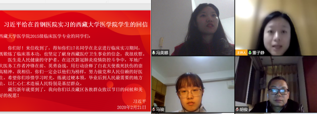 首钢医院实习的西藏大学医学院学生的回信精神,并就当前时期的学生党建工作进行部署。院党委书记胡俊、党委秘书梁岚与13位学生党支部书记参会,会议由院党委副书记董子静主持。