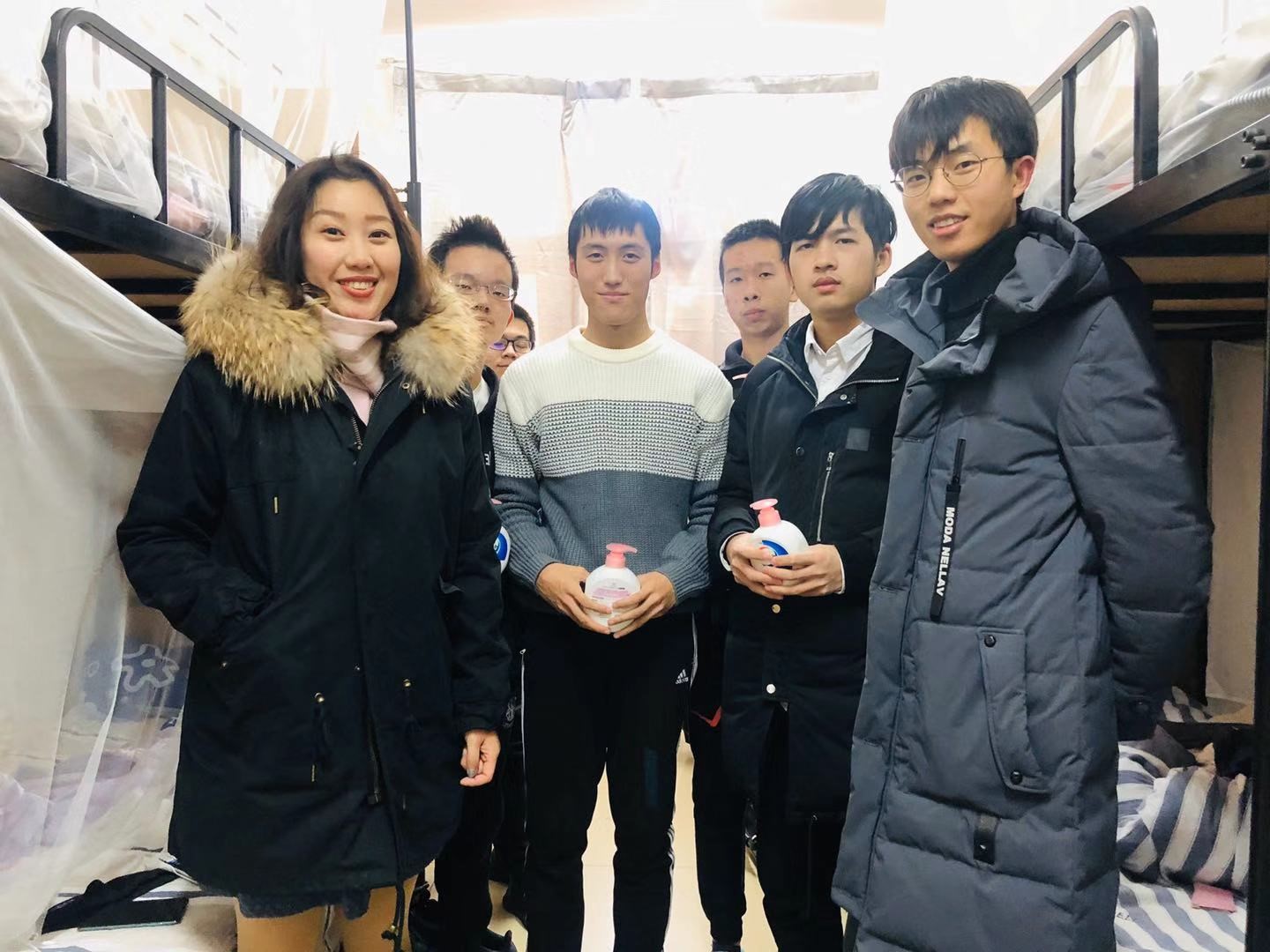 12月30日,学工办为每个学生宿舍购置的洗手液到货。2019级本科1班第二班主任曹璐老师、年级主任崔孟龙、学生工作办公室崔杰诺老师推车前往,为每个宿舍送上洗手液,教学“七步洗手法”,提醒同学们养成饭前饭后、便前便后勤洗手的好习惯。