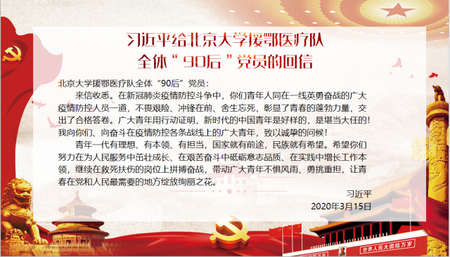 援鄂医疗队全体“90后”党员的回信。两院部分本科生党员与入党积极分子共同学习,麻豆视频