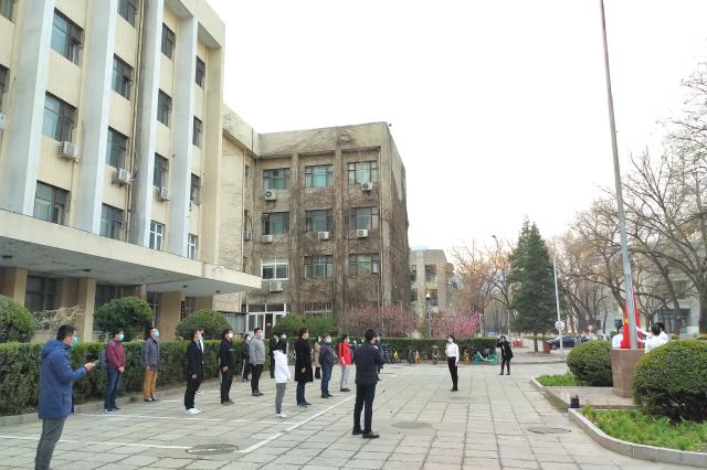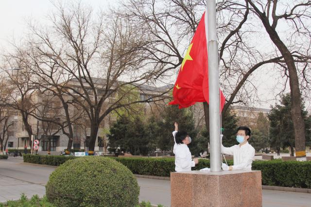清晨7时许,百余名青年线上线下集结,在校师生庄严肃立,升旗仪式正式开始。升旗手与护旗手分别为来自三个学院的本科生、硕士生、博士生,通过前期学习,共同执行神圣的升旗任务。在庄严的国歌声中,五星红旗冉冉升起,全国各地同步观礼的青年齐唱国歌。