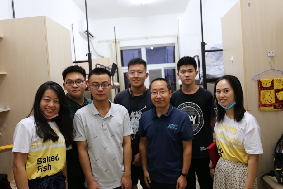 看到老师们的到来,同学们露出惊喜的笑颜。陈大岳依次询问同学的家庭情况、学习经历、适应状况等,耐心解答了同学们对大学生新生活的部分困惑与问题。他嘱咐同学,要尽快适应新的生活环境,注意休息、加强锻炼,室友之间要互相帮助、和谐相处,共同在学习数学的道路上不断前进。期间,陈大岳还与部分学生家长进行了交流,他感谢家长将孩子交给了学院,也希望家长能够放心地让孩子独立成长。