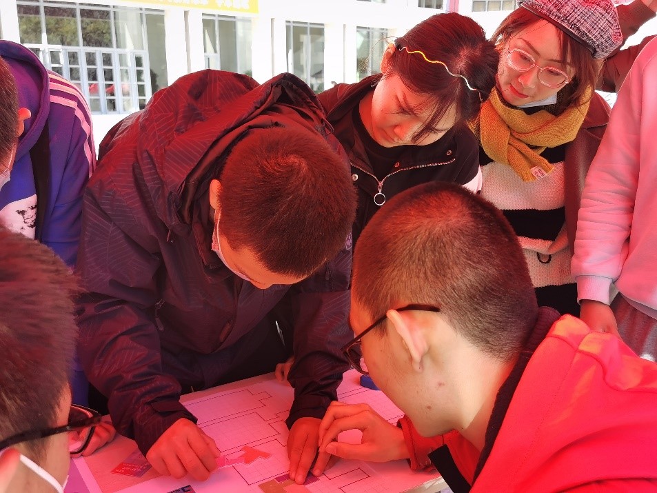 “突破封锁线”“拼多多”“鸡识树”“填鸡赛马”“色块迷踪”“博弈者在数学国”“向未知前进”“过河大作战”“漫天卷地”“算数华容道”“卷鸡之战”……本次活动的11个游戏都由学院同学自主设计、改编,各具特色,极富新意,趣味非凡。参与者们手持活动门票,在各个游戏点通关盖戳,碰撞思维火花。