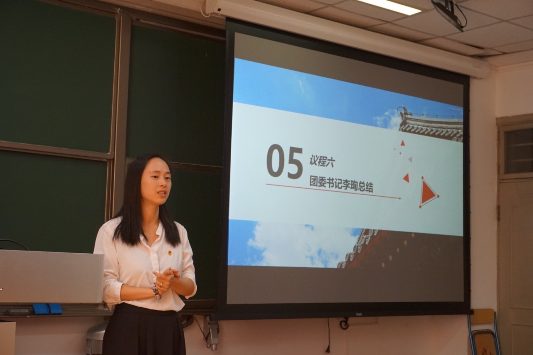 第十五期团校秘书长、2020级本科生覃旦妮介绍了团校的基本情况,对本年度的团校课程安排做了简单的介绍,其中既有公文写作、摄影技能、软件操作等技能培训,也有实践参访、座谈交流等主题团日活动,她以学姐的身份分享了在团校的收获,并表达了在接下来的一年时间中和同学们一起顺利完成团校的各项活动的希望。
