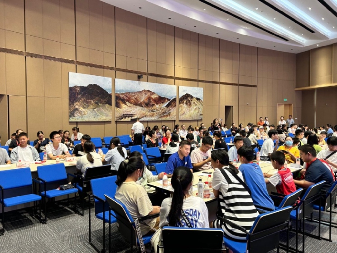 河南校友会副会长杨锋、实践团全体师生及郑州青少年学子代表参与此次活动。会上,邬蒙为大家介绍了中原科技城建设发展情况,展现了河南求贤若渴的意愿。杨锋为大家介绍了河南的悠久历史,并对青年学子们提出了殷切的期许。李欣意则向郑州的支持与帮助表达了感谢,并表示本次活动要将实践小课堂与社会大舞台联系起来。同时,他也对河南青年学子寄予厚望,希望他们将来也能进入北大学习。冯晨旭、王如意、任子博三位同学分享了学习数学的经验。最后,实践团师生和在场的郑州青年学生展开交流与讨论,大家在轻松愉快的氛围中畅所欲言,建立起深厚的友谊。