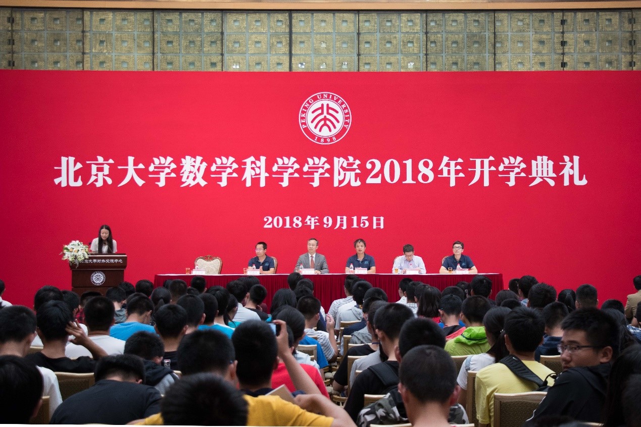 典礼开始前,2018级新同学在英杰交流中心门前留下入学合影,将与未来的毕业合影遥相呼应,组成数院人的成长映像。此前迎新、报到、军训等不同阶段的2018级新生影像也在屏幕上滚动播放,显示新同学初入燕园的足迹。在雄壮的国歌声中,开学典礼正式拉开帷幕。