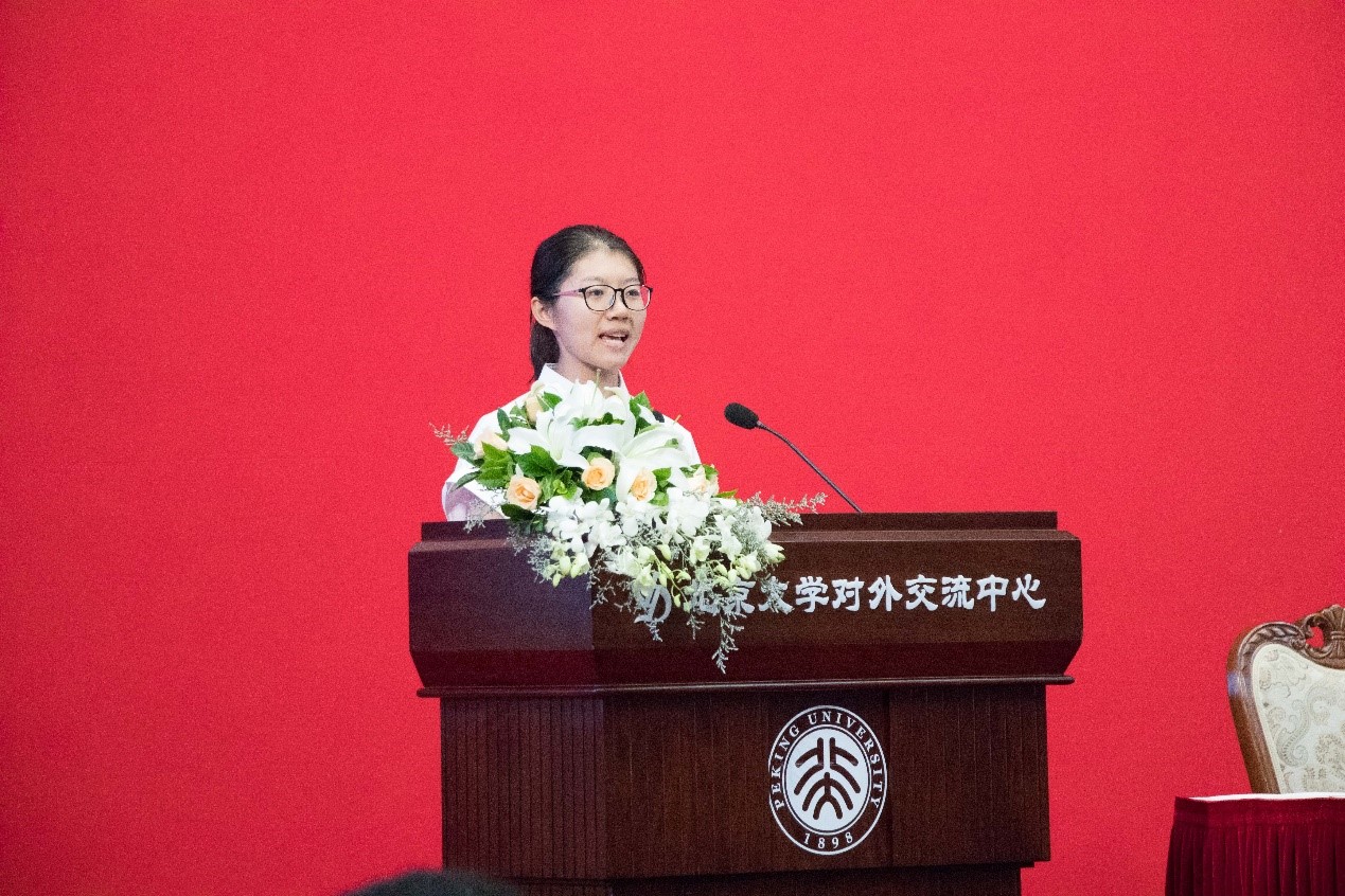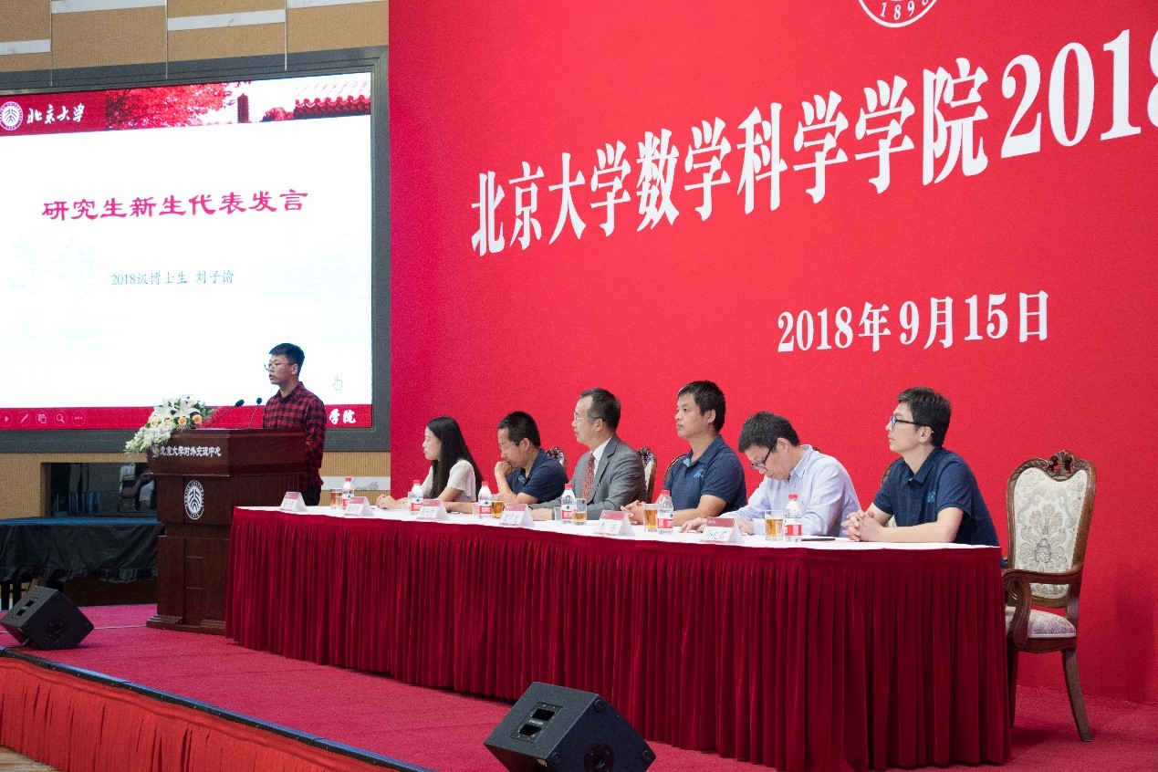 2018级本科生王艺纯、博士生刘子愉,分别作为本科生和研究生新生代表发言。王艺纯在发言中回顾了她与北大结缘的渊源,从神往北大的游客到参加数学与科学学院夏令营的营员,再到圆梦北大的新生,她表示愿与同学们共同留下青春记忆,在追随最前沿学科领域的旅程中传承北大精神。刘子愉则以“我们为什么在北大读研”作为开场白,表达了对燕园生活的设想与期待,在他看来这里除却五彩缤纷色彩斑斓的土壤,更有同窗间的切磋碰撞,除却学术研究的抱负,还有改变世界的理想。