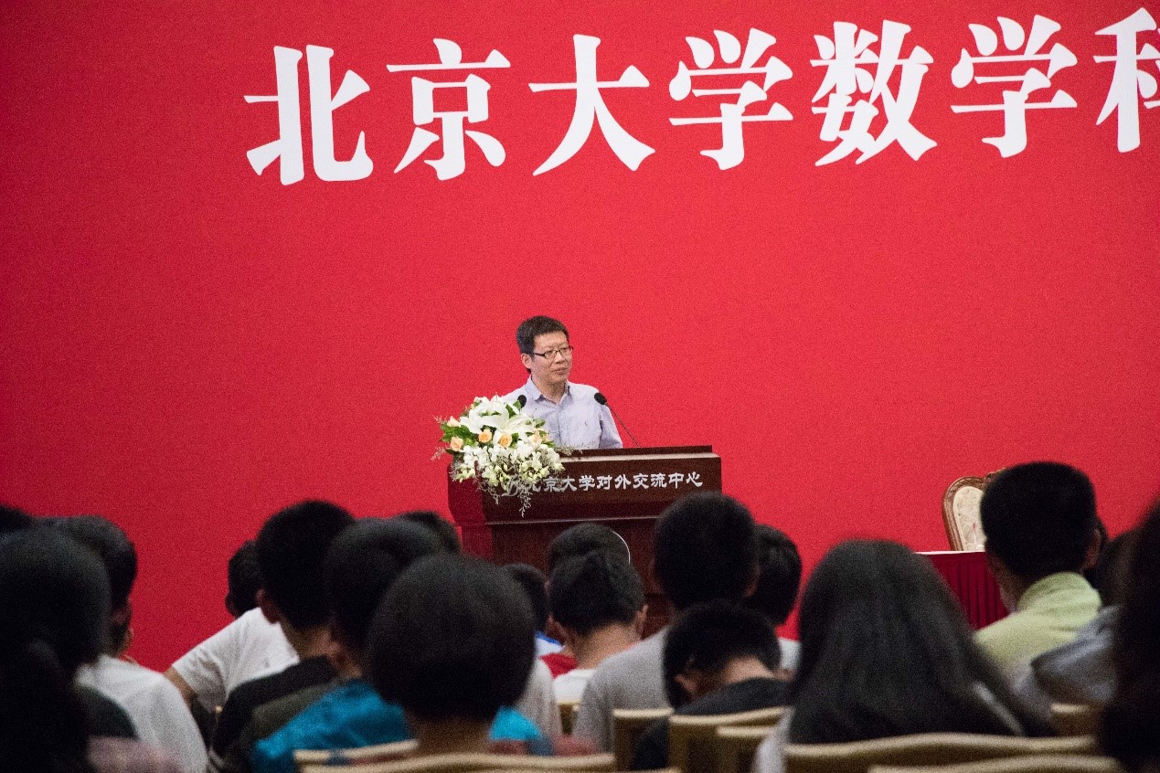 院长陈大岳教授代表学院教职员工热烈欢迎和祝贺新同学的到来。陈院长在致辞中谈到,得天下英才而育之,是为君子之乐,学院将倾尽所能为同学们提供成长成才的氛围环境。他回顾了学院从1913年数学门发源,最早开展数学教育的历史,及至今日推进“双一流”学科建设,努力提升办学能力和办学实力,这说明学院能为同学们提供强大的学习助力,也应培养出更多优秀人才。对于在座的新同学,陈院长勉励大家珍惜宝贵的学习机会与青春年华,顺利毕业,人尽其才,为国效力。针对从中学到大学、从本科到研究生的转变,他建议同学们做好时间管理与适应转变,如果遇到学业、心理、经济等困难及时寻求学院、教师、辅导员等方方面面的帮助。在此基础上,陈院长勉励同学们志存高远,为人生做好谋篇布局,走得更远,实现更高的人生价值,为民族复兴传承北大人的贡献。
