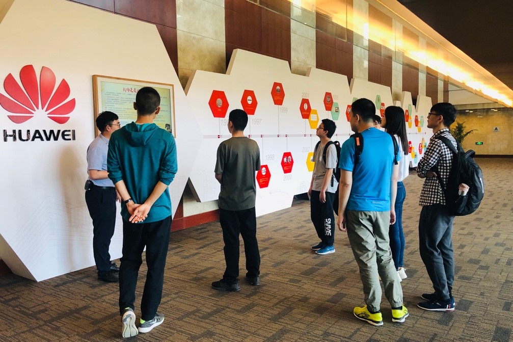 在参访过程中,首先由人力资源陈浩东先生向同学介绍华为北京研究所的两个主要办公区,华为北京研究所坐落于海淀区的环保科技示范园,作为一个研发基地,专注于手机终端的研发,员工共计8000名左右。随后,他向同学们介绍了华为公司的云盒主机,也介绍了公司特有的“床垫文化”,因为一部分工作需要深夜在运营商客户的机房里进行维护,为方便员工休息,为员工配备床垫。同学们接下来前往员工活动中心,陈先生向同学们介绍了华为的历史发展墙,从华为创建之初至今的关键事件和时间节点,从第一台路由器到5G,展现了企业的发展之路。紧接着,同学们来到模拟平时拍照的海思图灵图像实验室,实验室工作人员向同学们介绍了包括拍摄不同区域测试映射频域光谱、分析不同区域方差值、不同色温的不同光源、仿真算法、手机的降噪算法等方法的具体应用。最后,同学们与海思无线终端算法部的刘主管展开了圆桌讨论。刘主管先向同学们介绍了部门工作定位和招聘要求,随后12级博士生院友朱景龙与同学们分享自己在华为工作的经历,两年时间从应届生成长为工程师的过程。而后同学们就算法岗岗位要求、部门日常工作、职业发展前景等问题与主管、院友、HR进行了深入交流。