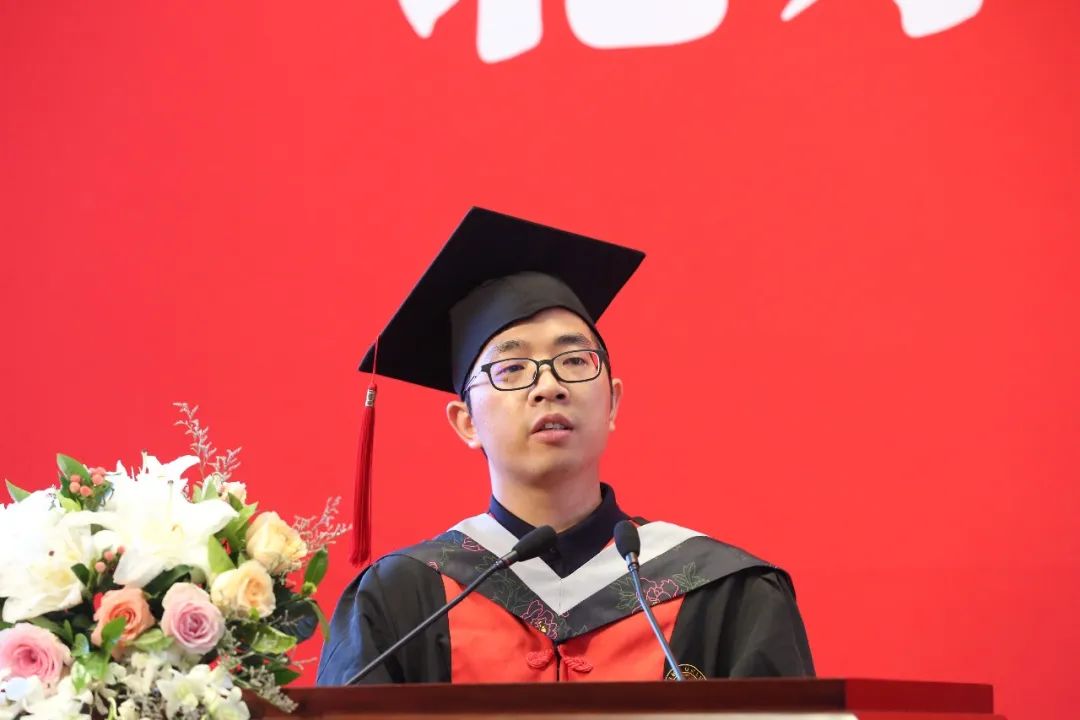 研究生代表2016级博士生王亮分享了自己在北大数院的经历和感悟,带大家回顾了北大数院人丰富多彩的生活,他希望各位同学能永远牢记北大数院人的使命担当,为建设伟大祖国贡献自己的青春力量。