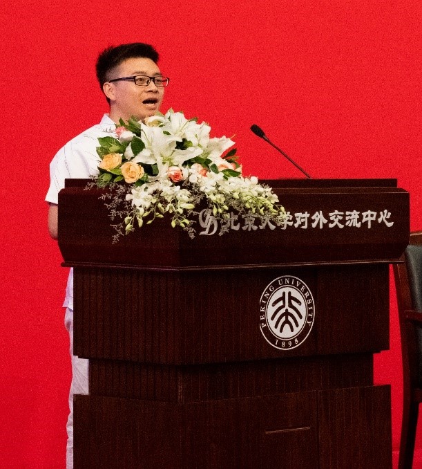 我是基础数学拓扑方向的博士研究生王炜飚。很荣幸作为老生代表发言。在此首先向各位新生同学说一声:欢迎你们加入北大数院这个光荣而有爱的大家庭!