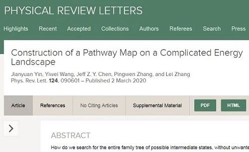 张平文院士、博士生殷鉴远等人合作的研究论文“Construction of a Pathway Map on a Complicated Energy Landscape”在Phys. Rev. Lett.在线发表。该工作提出了在能量景观上构建“路径图”的计算方法,可以寻找系统的多个极小和过渡态,并揭示不同鞍点解之间的连接关系。
