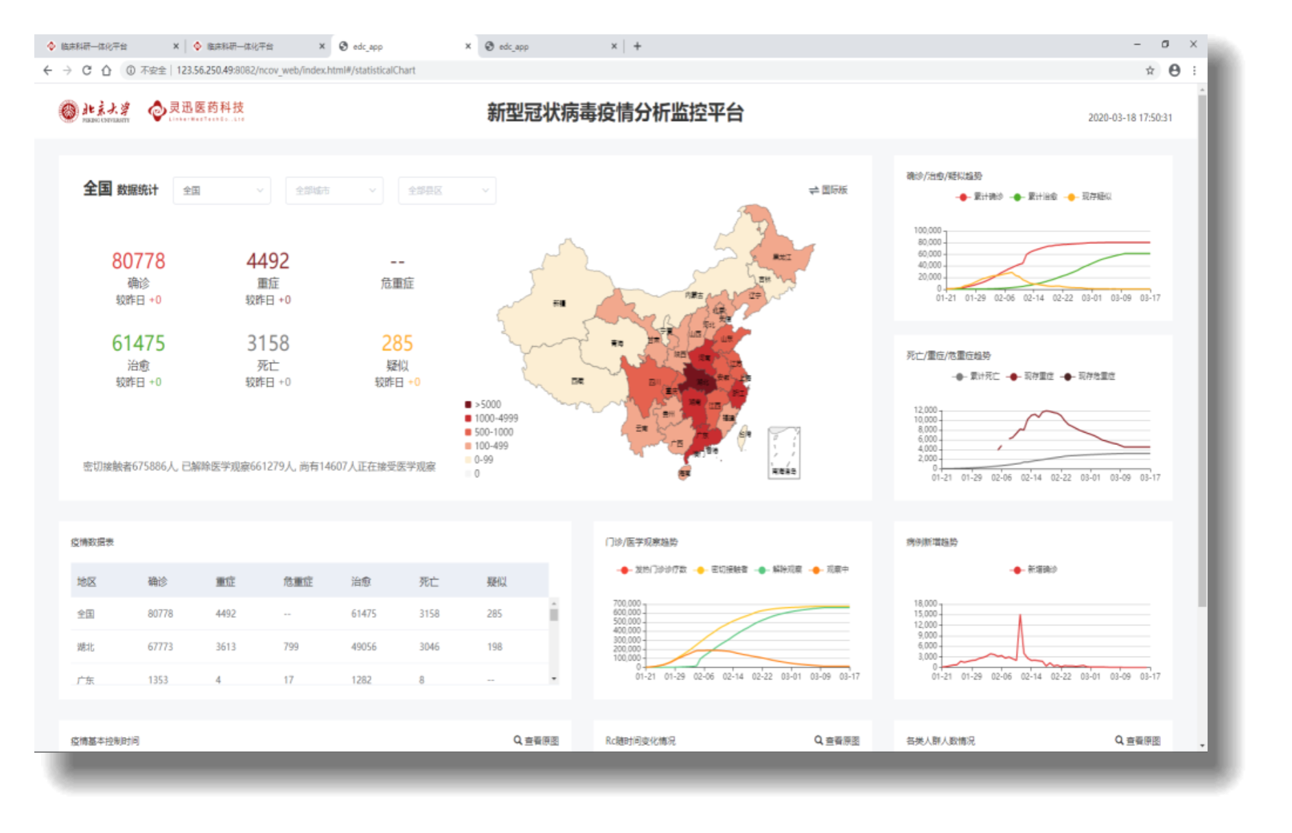 新型冠状病毒疫情分析监控平台示例图(全国疫情概况)