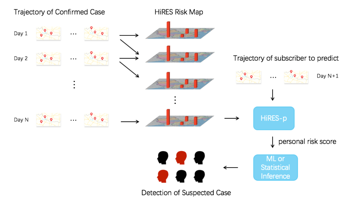 张平文院士团队与中国移动通信集团有限公司信息技术中心团队联合攻关,按照《网络安全法》《突发事件应对法》《传染病防治法》《中央网络安全和信息化委员会办公室关于做好个人信息保护利用大数据支撑联防联控工作的通知》等相关规定,根据国务院联防联控机制的要求,依法依规,严格落实数据安全和个人信息保护的相关措施,基于实验室的算法模型能力与中国移动的大数据能力,开展了精细化疫情风险评估和疑似病例预测研究。已取得的研究成果包括基于轨迹大数据与物理平均场理论的HiRES风险地图时空模型、HiRES-p个人流行病感染风险客观评分模型,以及基于该模型的疑似病例预测算法。