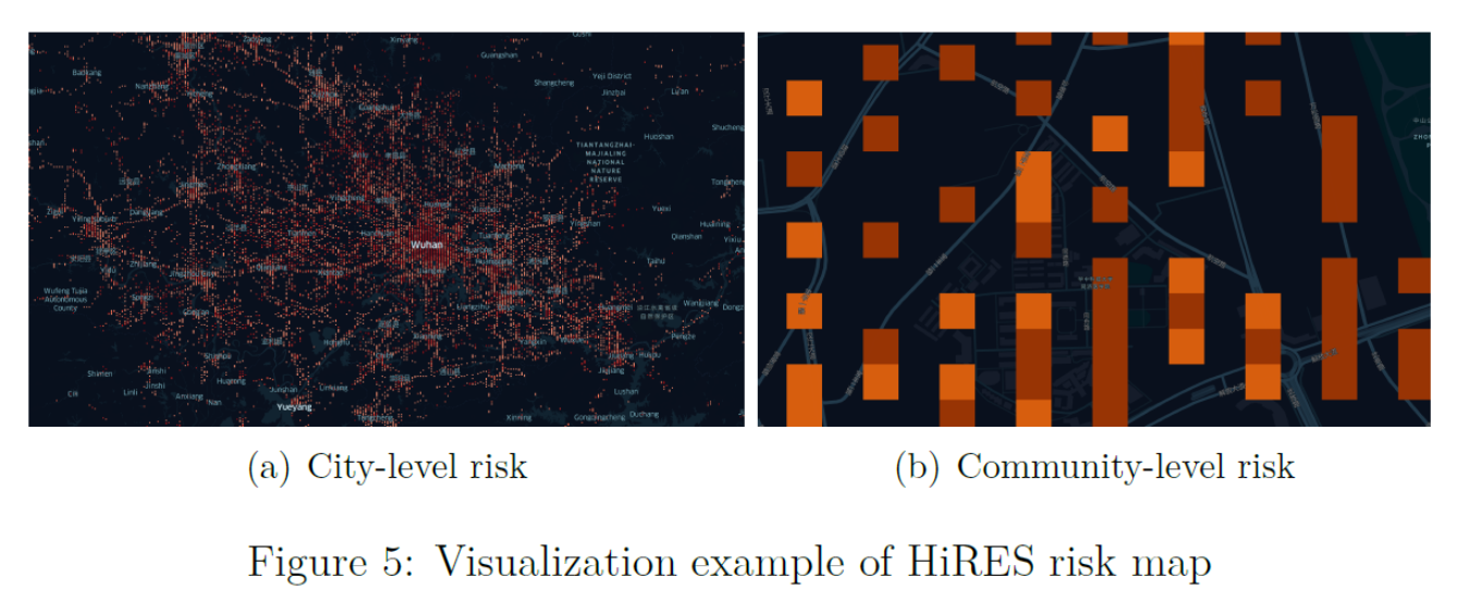 基于我国新冠早期爆发阶段(2020年1月)数据集的数值实验表明,HiRES风险地图对全域和局部等不同尺度的风险都具有高精度的模拟量化能力,区域尺度的风险值与该地区确诊病例总数相关性达95%以上;HiRES-p评分经验证是衡量个人流行病感染风险的有效方法,只要人群感染率低于20%,对疑似病例基于正确分类的预测准确率可达90%以上。