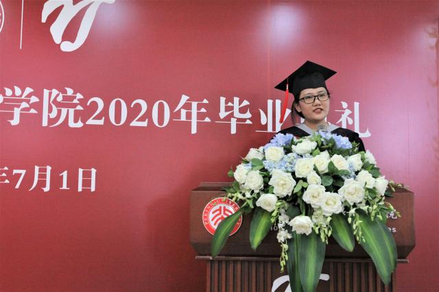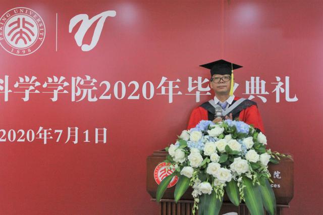 毕业生代表、2016级本科生王逸轩讲述了自己在北大数院成长的心路历程,并提到,生活中的不确定性时时在,希望同学们遇到混乱时,都能找到内心的平静,努力与之相处。