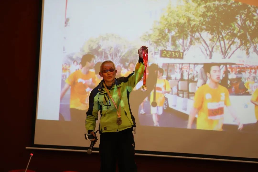 重阳不重样,长情常相伴。80多岁的张绪定老师分享了退休二十年的生活,参加马拉松、骑行、游泳、推着老伴环游世界。平淡话语间足见伉俪情深,也充分展现了离退休教职工以阳光心态热情拥抱生活的精神风貌。