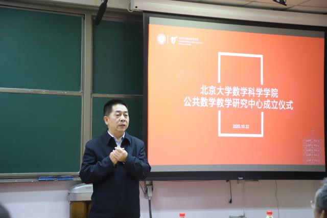 刘建波代表学校教务部对公共数学教学研究中心的成立表示祝贺,感谢数学学院一直以来对全校数学课的支持,特别是在今年上半年,数学学院克服重重困难,实现了线上教学,迈出了教学改革的重要一步,保证了学生们在疫情期间的数学学习。刘建波表示数学教育极其重要,数学可以增强人的思维能力,是通识教育的重要组成部分,期待中心的成立可以进一步推动数学教学研究的发展。